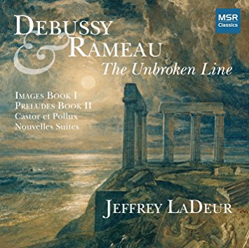 With this album, pianist Jeffrey LaDeur is making an argument: that there exists an “unbroken line” of stylistic influence between the early-18th-century keyboard music of Rameau and the early-20th-century keyboard music of Debussy. Certainly Debussy’s admiration of Rameau is no secret, and he was a passionate exponent of Rameau and others of the French tradition at a time when much of the musical world was completely absorbed by Wagnerian themes and styles. You can read the liner notes for a detailed account of LaDeur’s argument; for my purposes, I’ll just say that the juxtapositions he offers here (between two Rameau selections, the first book of Debussy’s Images and the second of his preludes) are fascinating and beautiful, as is his playing.