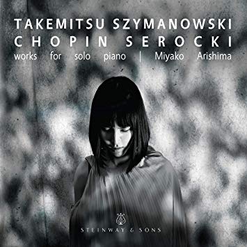Miyako Arishima is an outstanding young pianist whose debut album presents a bold and unusual program: a brief piece by the great 20th-century composer Toru Takemitsu (Rain Tree Sketch) followed by various works by Polish composers both famous (Frédéric Chopin, Karl Szymanowski) and obscure (Kazimierz Serocki). Chopin occupies the center of the program, in terms of both placement and allocated space; his Barcarolle in F sharp, his Mazurkas Op. 33 and his E-major Scherzo Op. 54 are surrounded by the Takemitsu piece, a selection from Szymanowski’s Métopes Op. 29, his Two Mazurkas Op. 62, and Serocki’s quirky and bracing Suite of Preludes. What unites the program is a sense of formal openness and expressionism (both of which are notable and paradoxical characteristics of Serocki’s duodecaphonically-inclined preludes), and of course the sparkling brilliance of Arishima’s playing. Recommended to all classical collections.